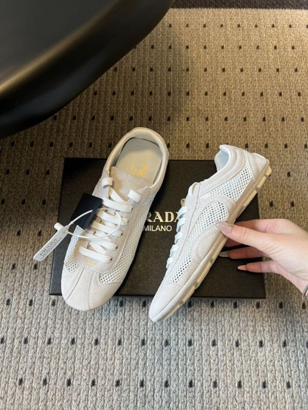 프라다 여성 몬테카를로 리에디션 2005 스웨이드 메쉬 스니커즈 1E247OFD_WH
