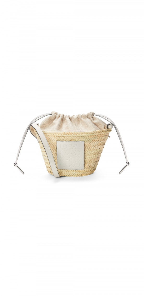 로에베 팜 리프와 카프스킨 소재의 드로우스트링 버킷 백