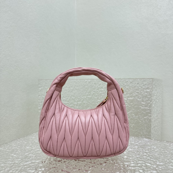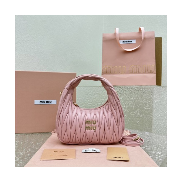 미우미우 완더 마테라쎄 나파 가죽 호보 백 라이트 핑크