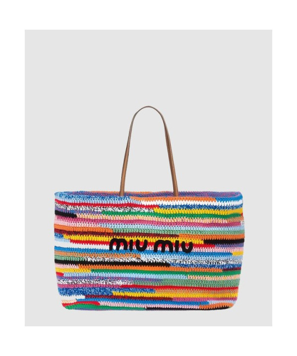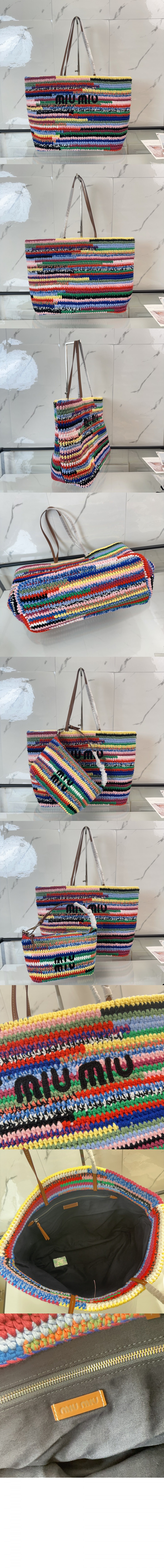 미우미우 라피아 앤 코튼 토트백 5BG228