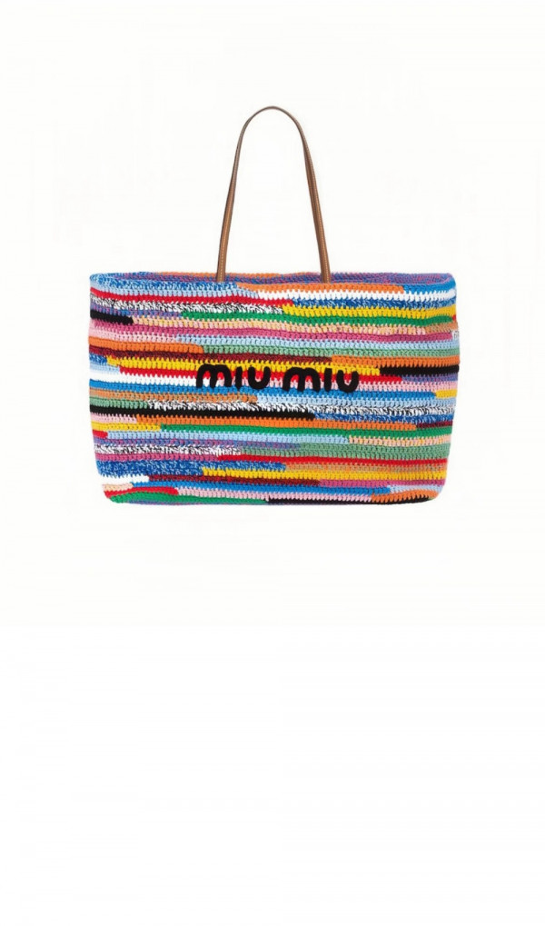 • 미우미우 라피아 앤 코튼 토트백 5BG228