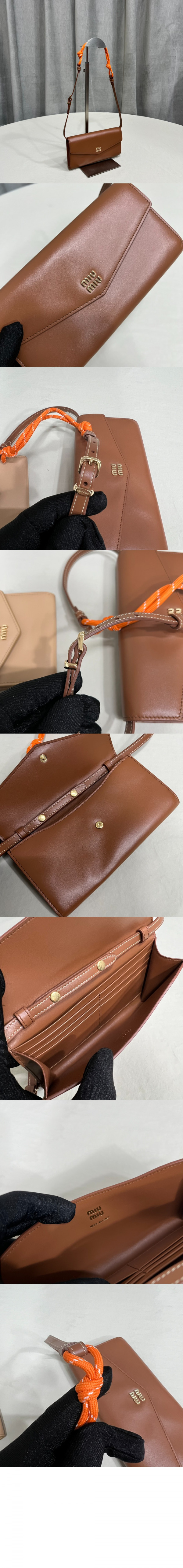 미우미우 가죽 및 코드 숄더 스트랩이 달린 가죽 지갑 5MT025