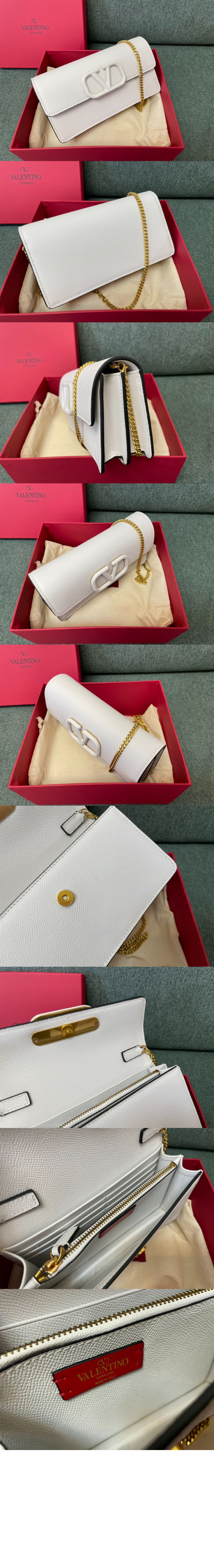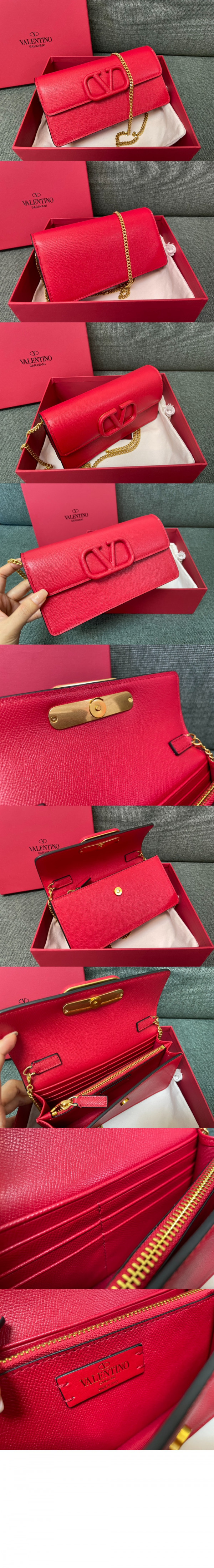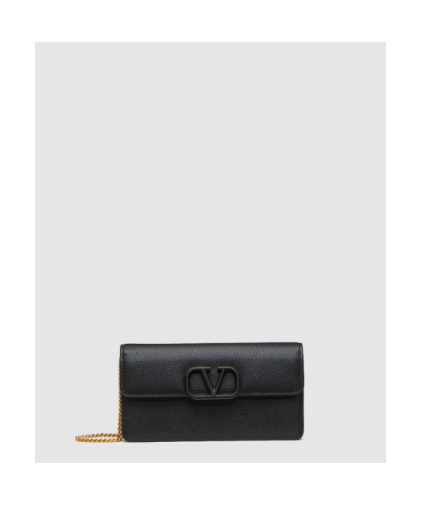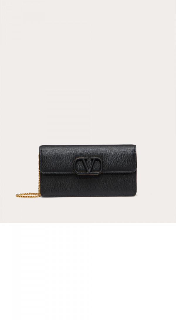 발렌티노 VLogo 시그니처 메탈릭 그레인 카프스킨 체인 지갑