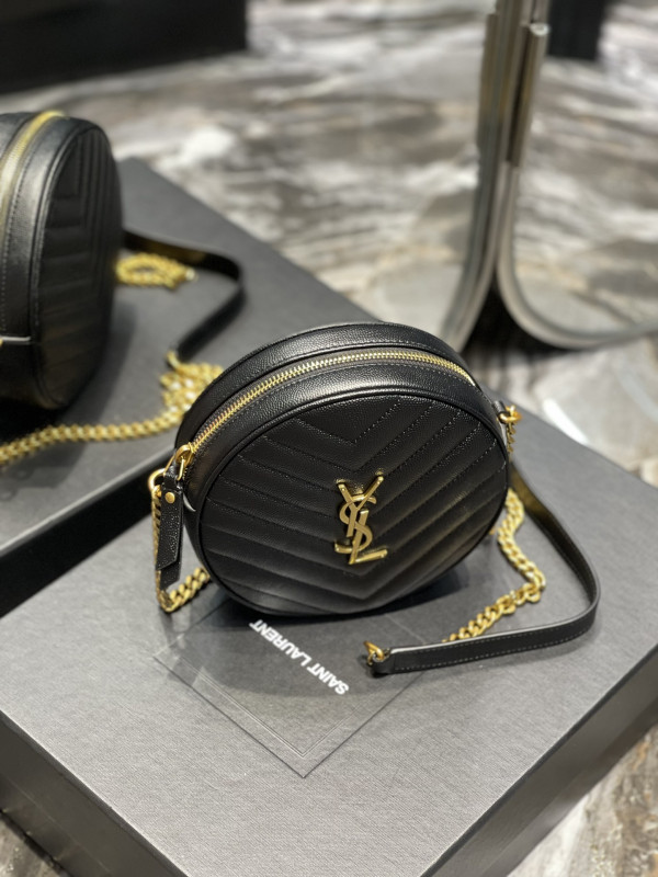 생로랑 쉐브론 라운드 카메라 백 블랙