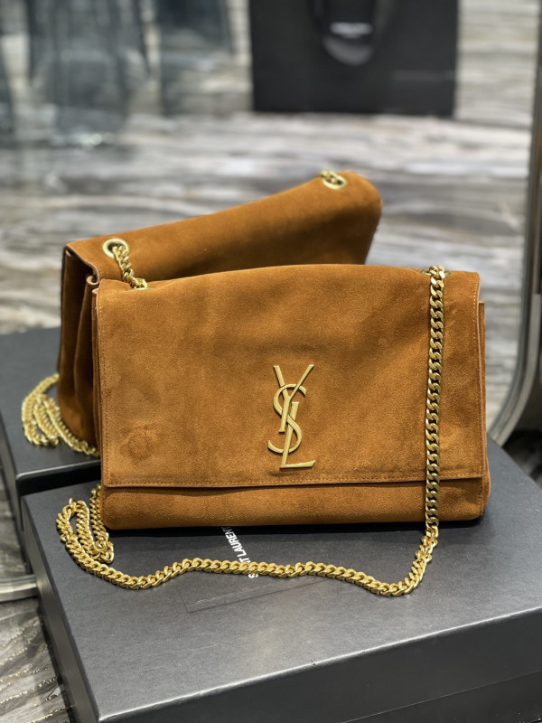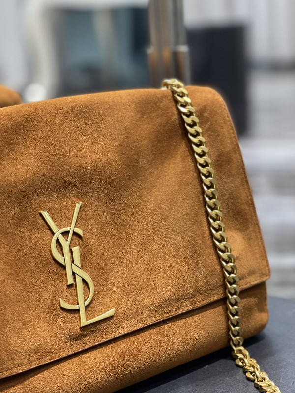 생로랑 미디움 스웨이드 리버서블 양면 케이트 백 브라운