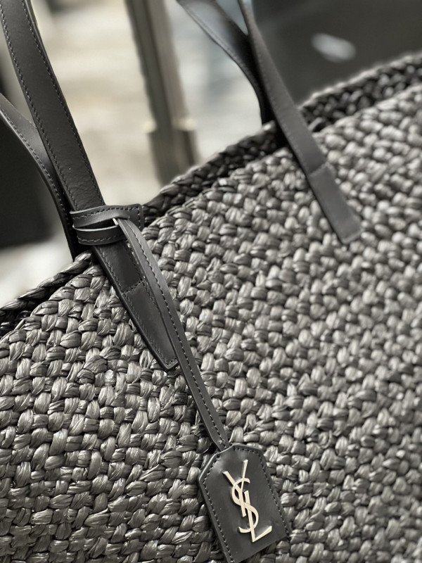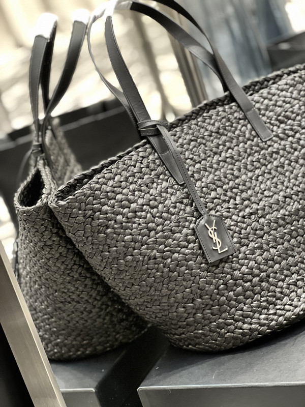 생로랑 파니에 미디엄 라피아 바스켓 백 블랙