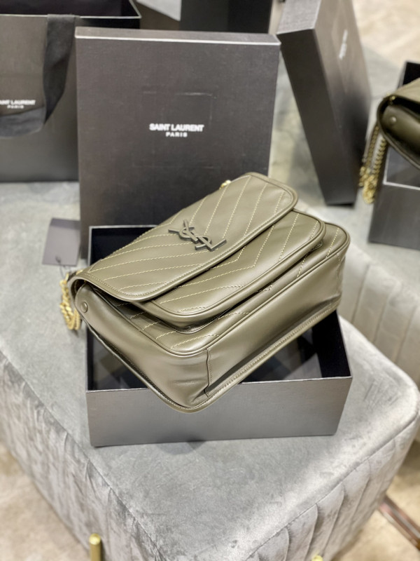 생로랑 니키 스웨이드 미디움 체인백 카키