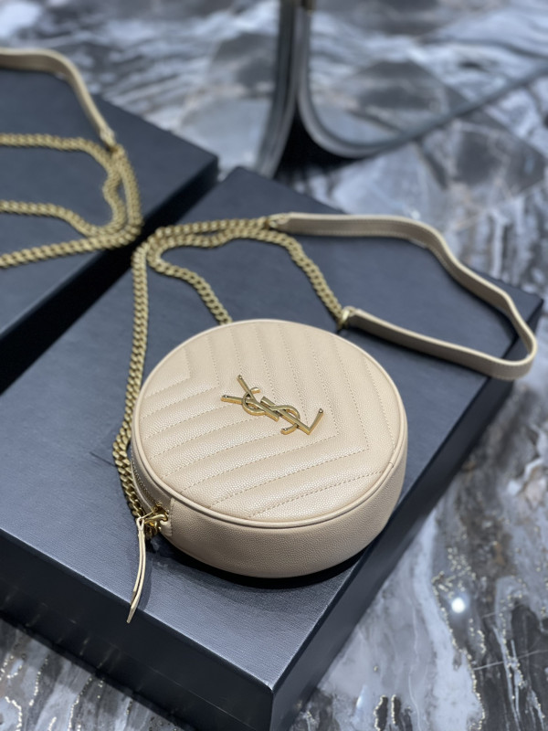 생로랑 쉐브론 라운드 카메라 백 베이지