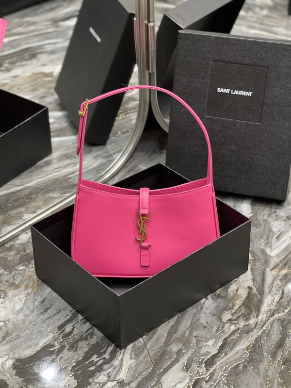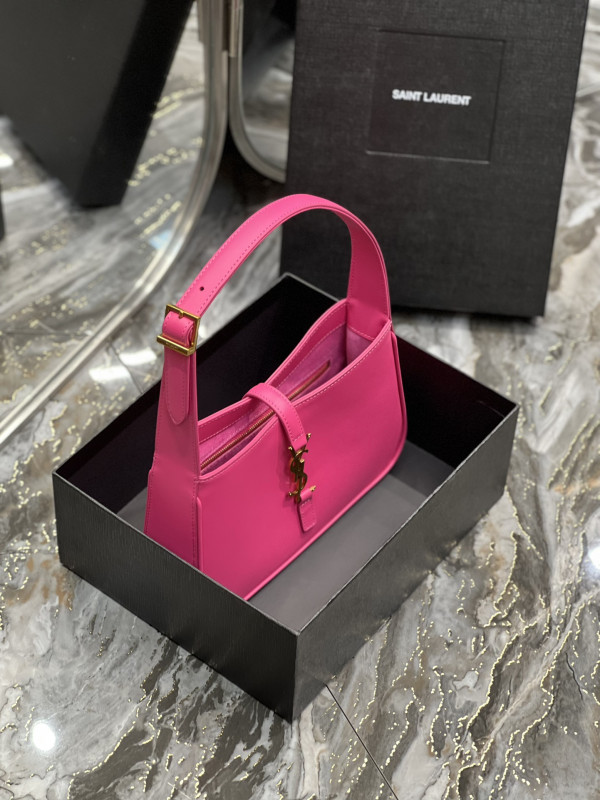 • 생로랑 LE 5 A 7 카바스 레더 호보백 핑크 금장