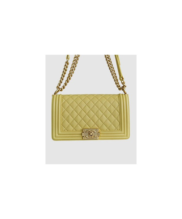 샤넬 보이백 미듐 옐로우 금장 캐비어
