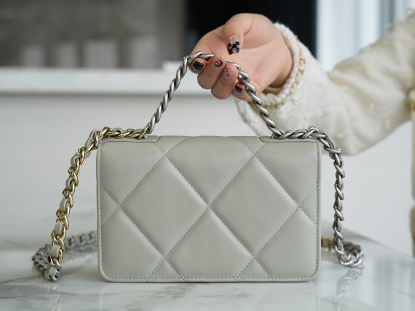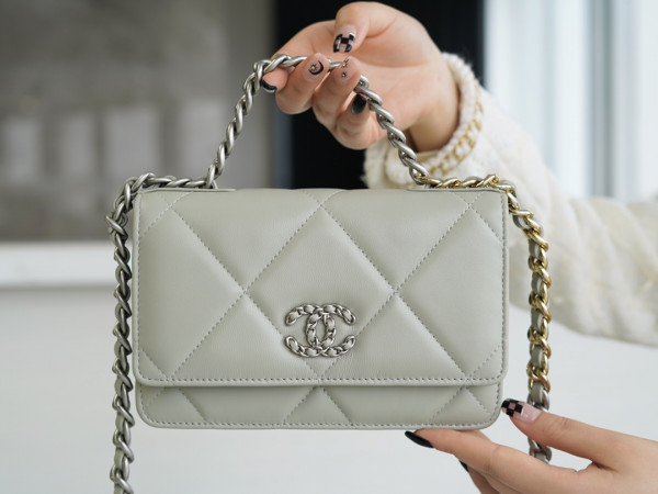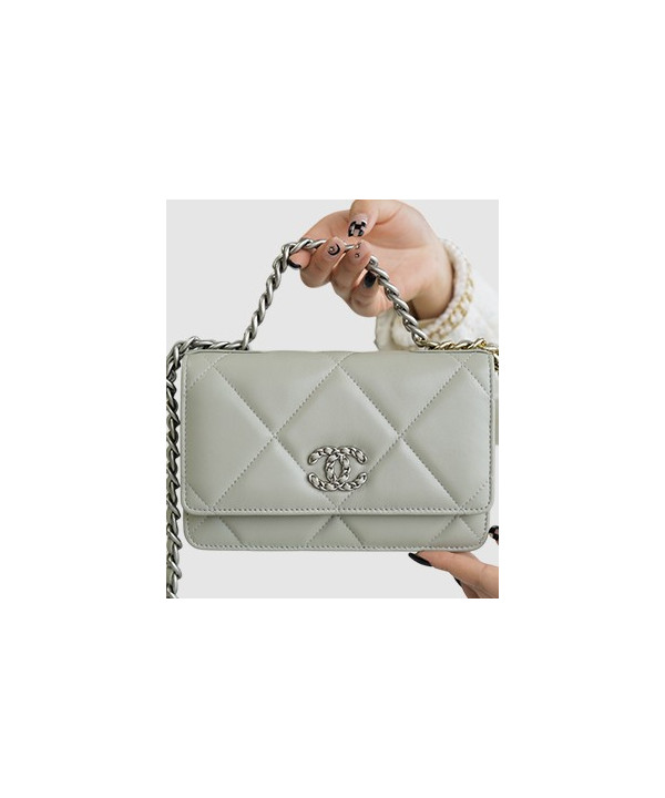 샤넬 19 WOC 턴락 램스킨 라이트그레이 은장