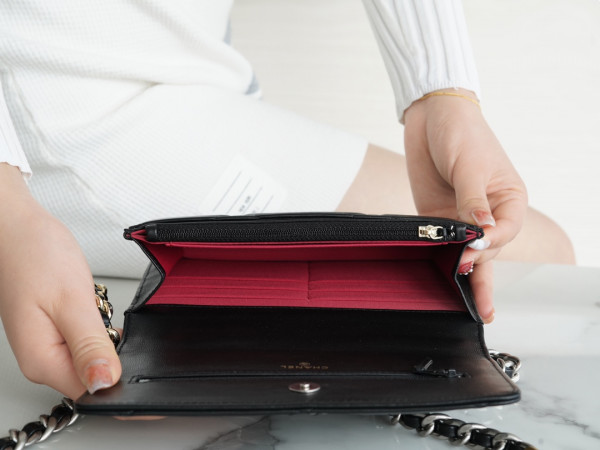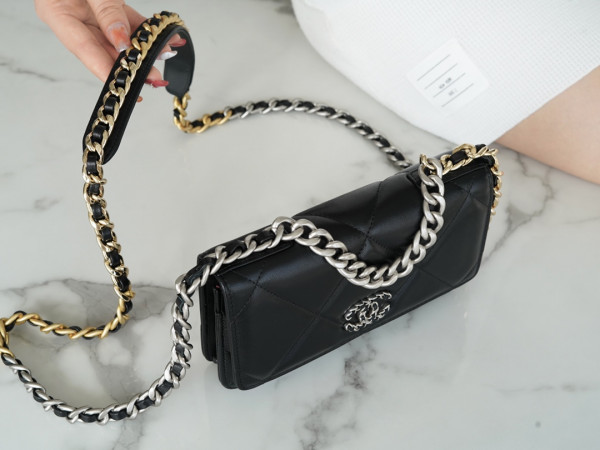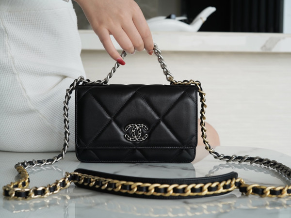 • 샤넬 19 WOC 턴락 램스킨 블랙 은장