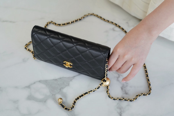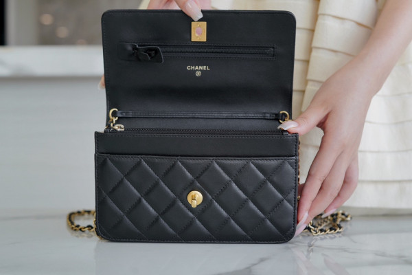 샤넬 WOC 골드볼 블랙 금장 램스킨