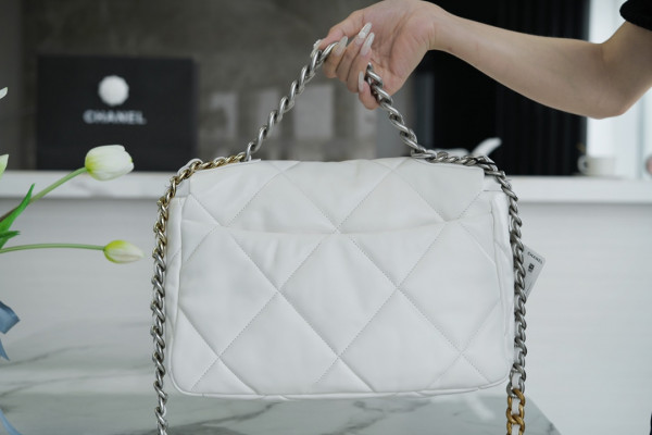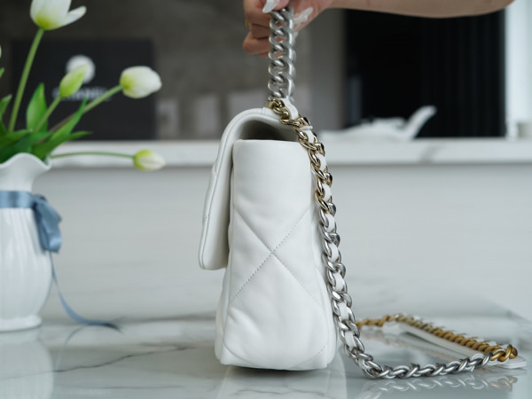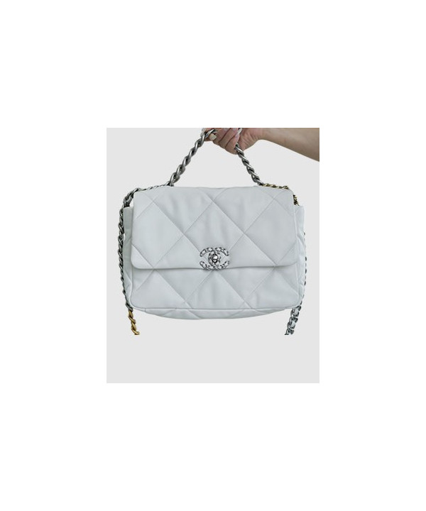 샤넬 19백 미듐 체인 램스킨 화이트