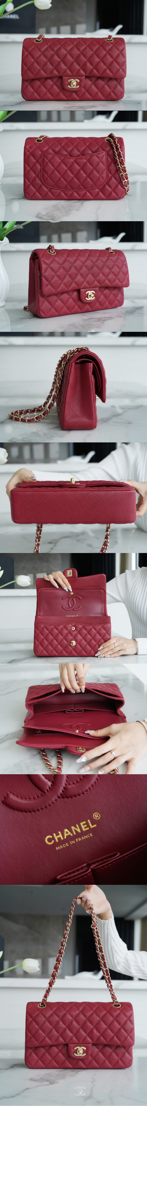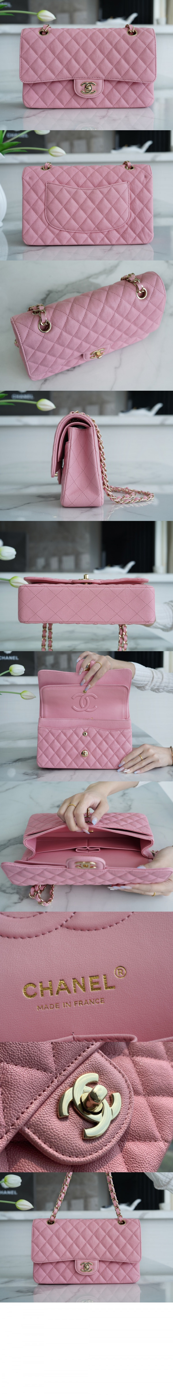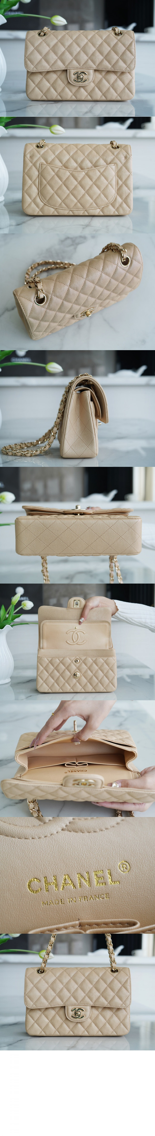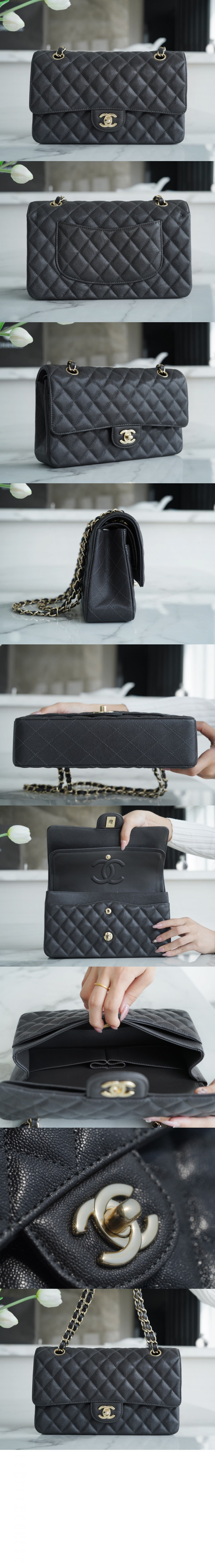 • 샤넬 클래식 캐비어 미듐 샴페인골드 A01112