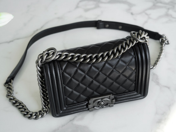 샤넬 보이백 스몰 블랙 은장 램스킨