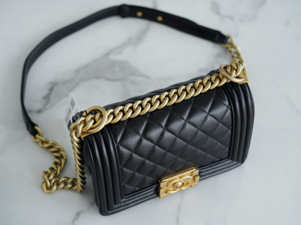 샤넬 보이백 스몰 블랙 금장 램스킨