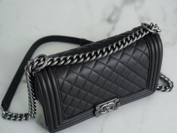 샤넬 캐비어 보이백 라지 실버 버클