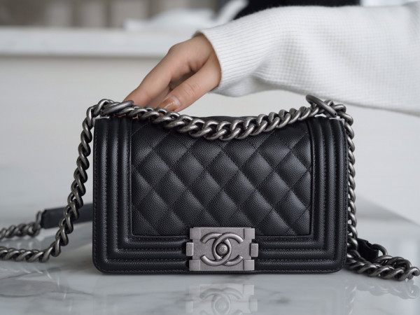 • 샤넬 보이백 미디움 블랙 은장 캐비어