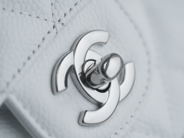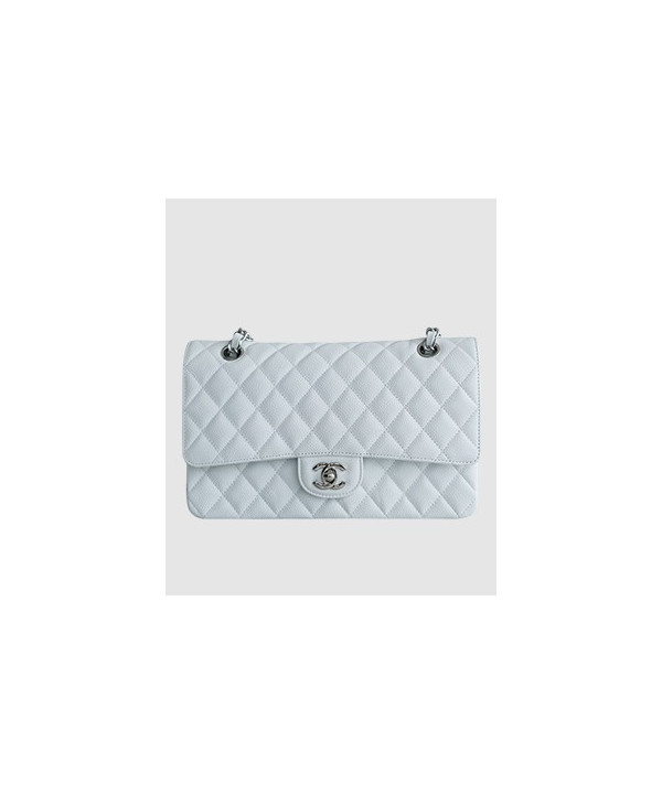 샤넬 클래식 미듐 화이트 은장 캐비어
