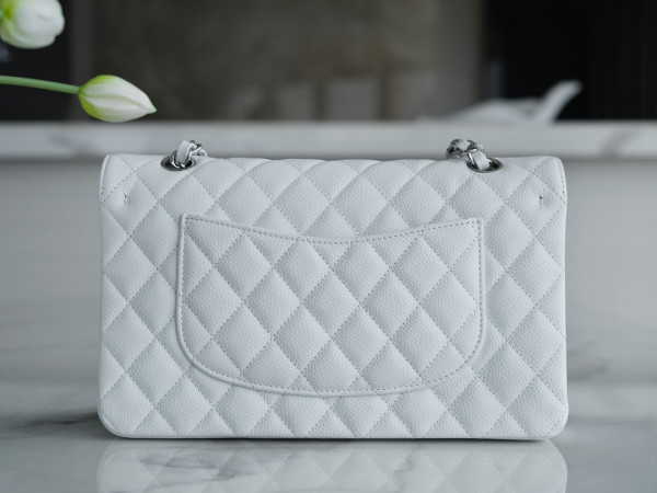 • 샤넬 클래식 미듐 화이트 은장 캐비어