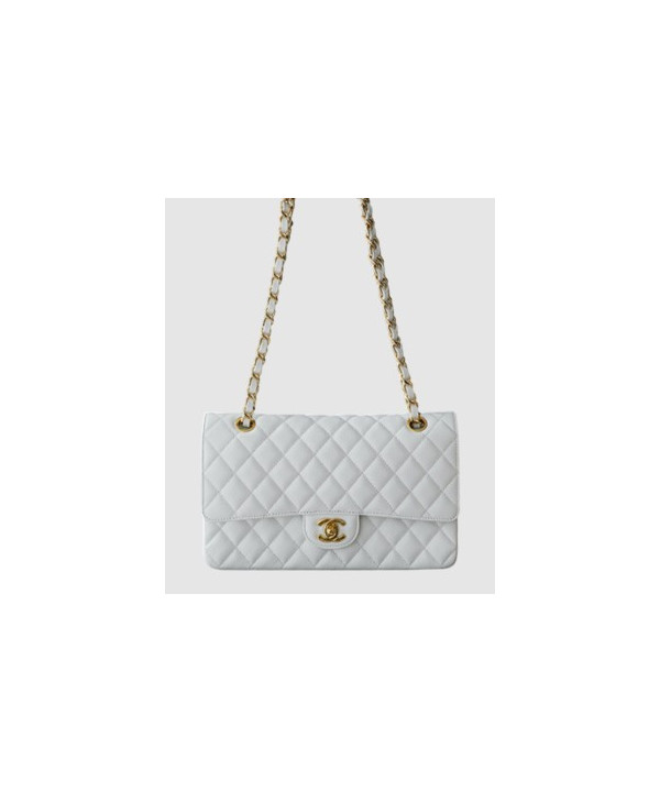 샤넬 클래식 미듐 화이트 금장 캐비어