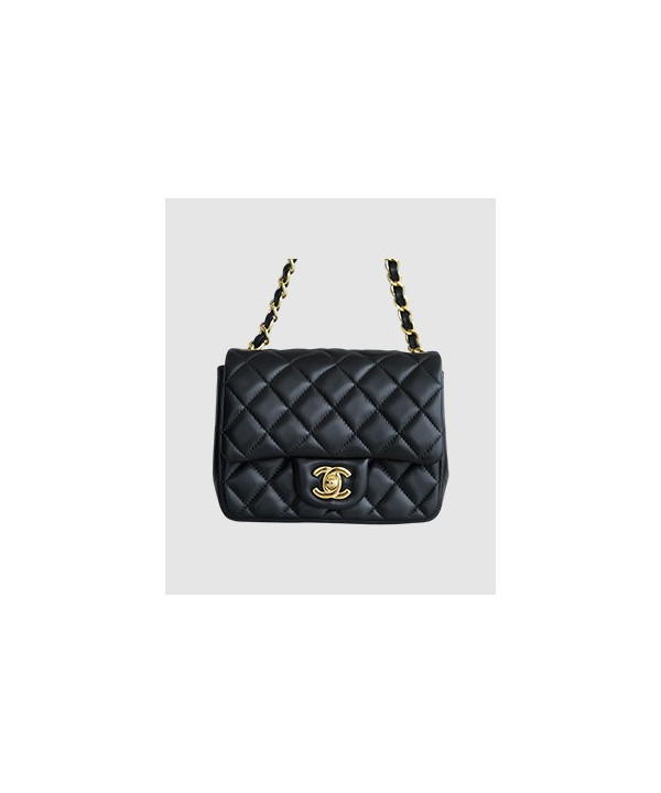 샤넬 클래식 뉴미니 블랙 금장 램스킨
