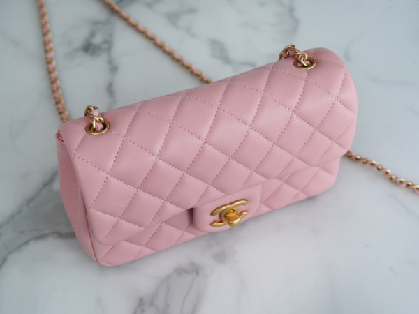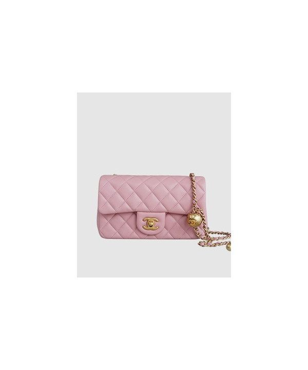 샤넬 클래식 메탈볼 플랩백 핑크 금장 램스킨