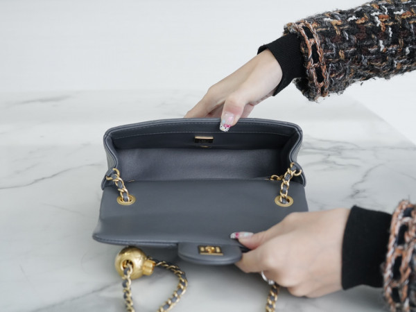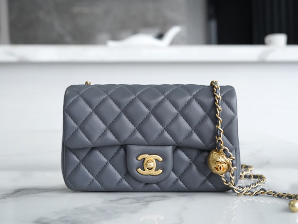 샤넬 클래식 메탈볼 플랩백 그레이 금장 램스킨