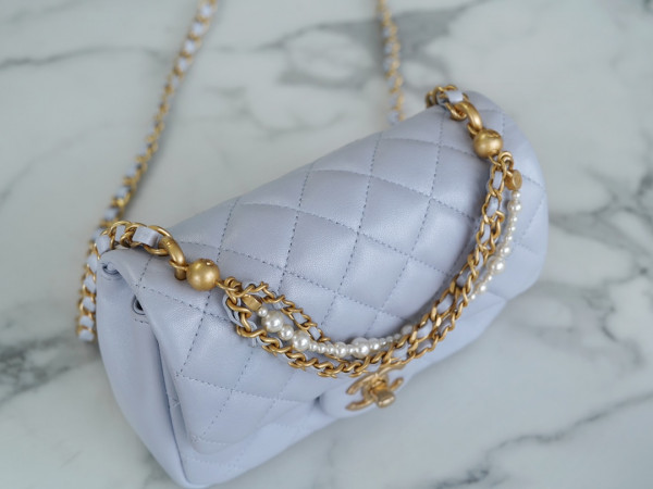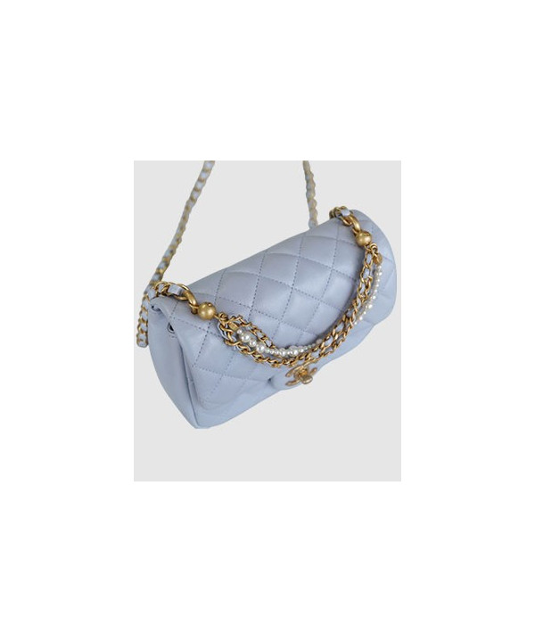 샤넬 클래식 더블 체인 숄더백 라이트 그레이 금장
