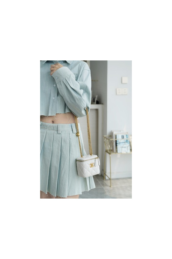 • 샤넬 스몰 체인 코스메틱 캐비어 화이트