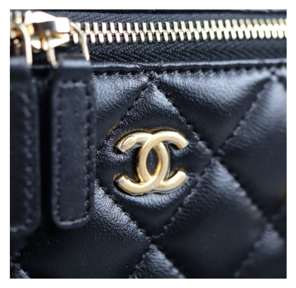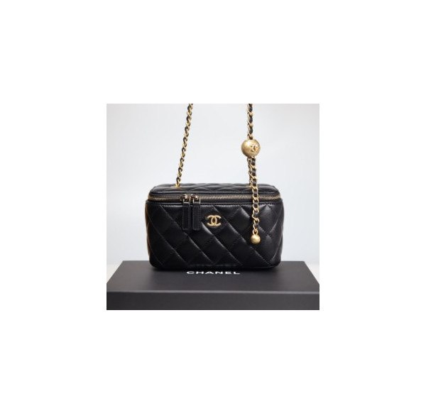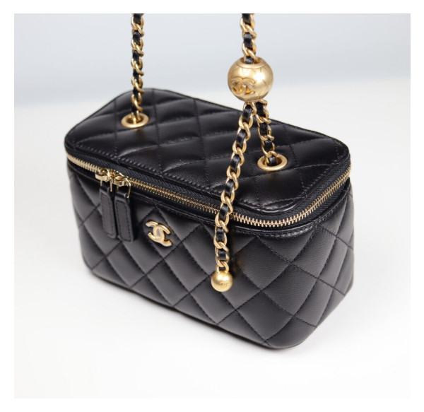 샤넬 클래식 골드볼 직사각 베니티백 AP2303 9.5 X 17.8CM 램스킨 블랙 금장
