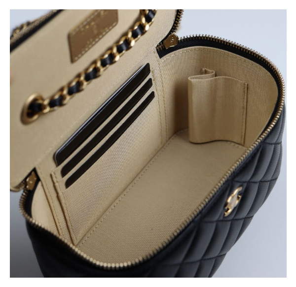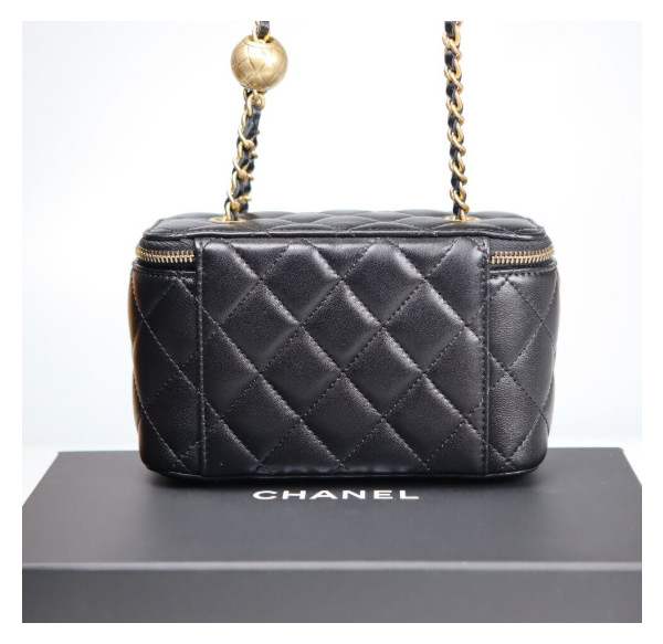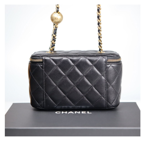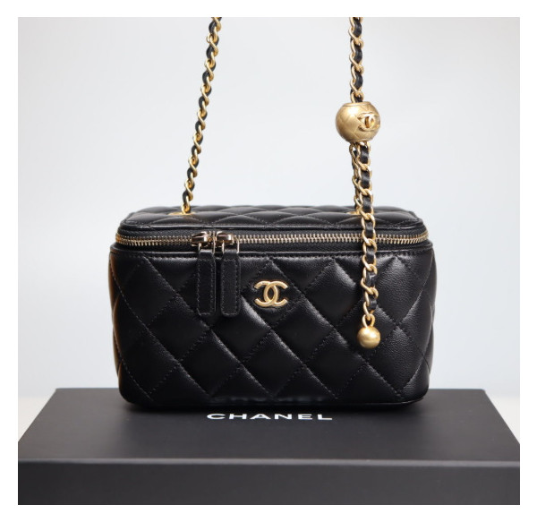 • 샤넬 클래식 골드볼 직사각 베니티백 AP2303 9.5 X 17.8CM 램스킨 블랙 금장
