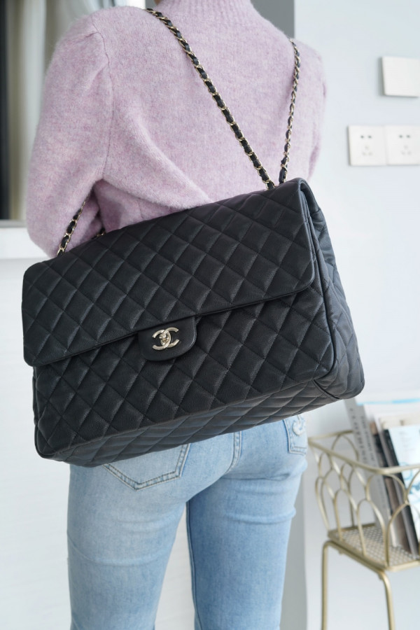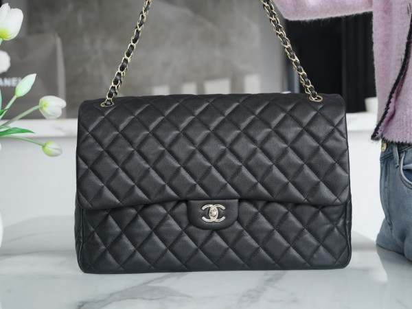 • 샤넬 클래식 맥시 핸드백 캐비어 은장 크기: 22 x 33 x 10cm