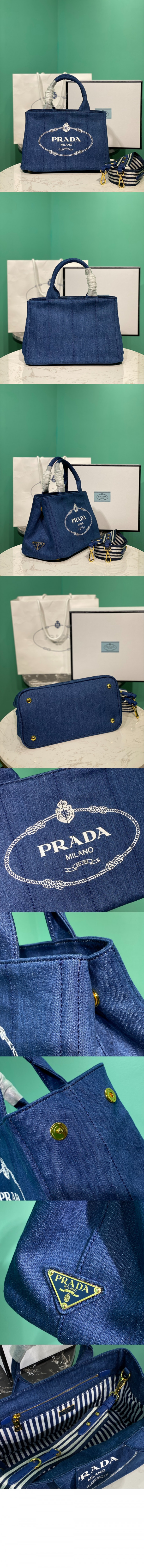 프라다 스트라이프 로고 토트백 1BG439