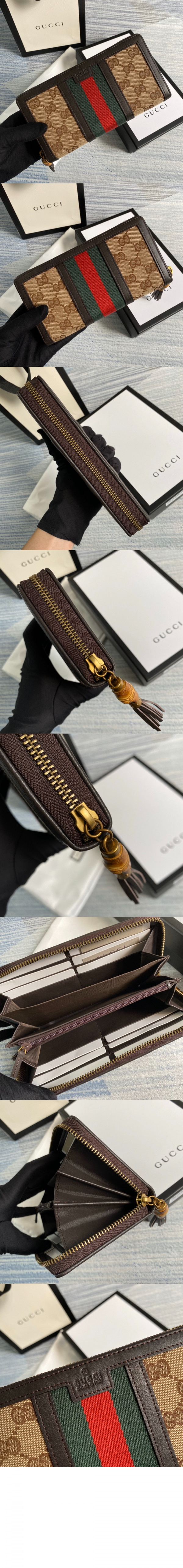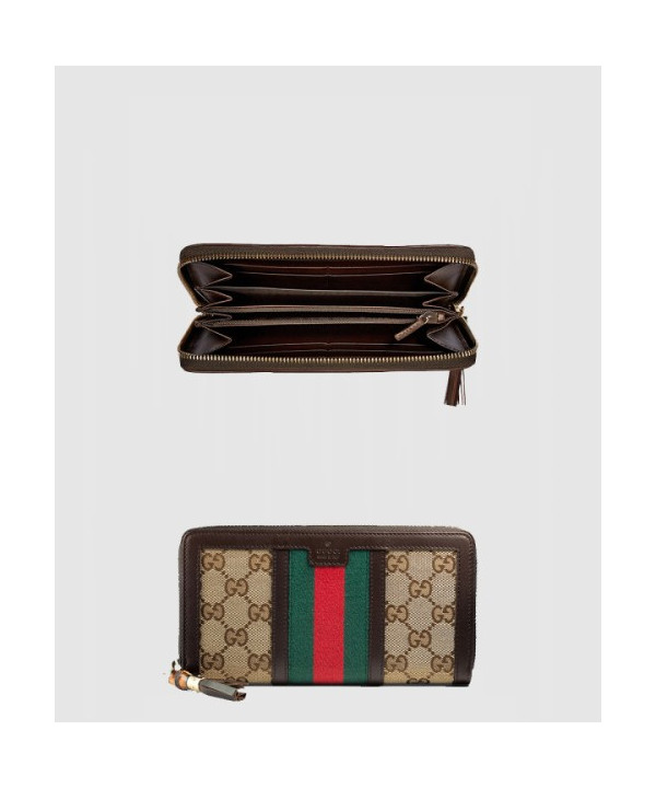 구찌 라니아 캔버스 GG 원단 지퍼형 가죽 지갑 353651