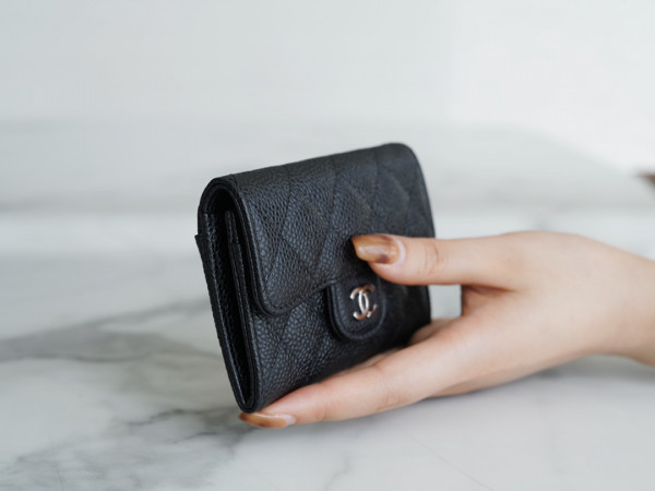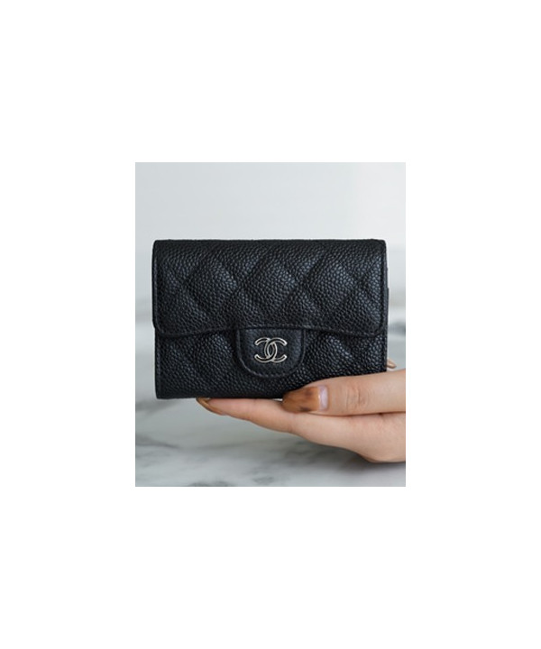 • 샤넬 클래식 똑딱이 카드슬립 카드지갑 캐비어 은장 AP0214