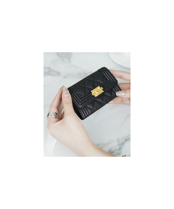 샤넬 보이 플랩 체인 카드지갑 캐비어 금장