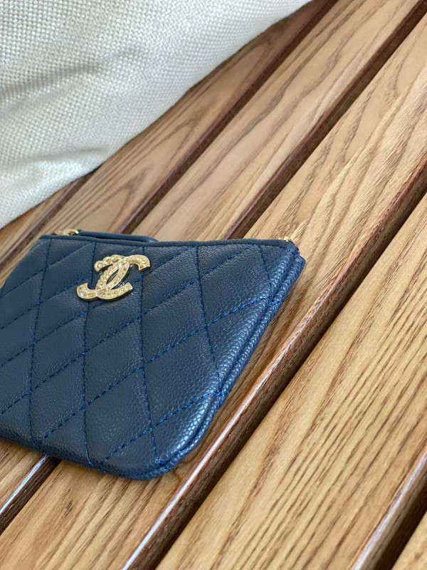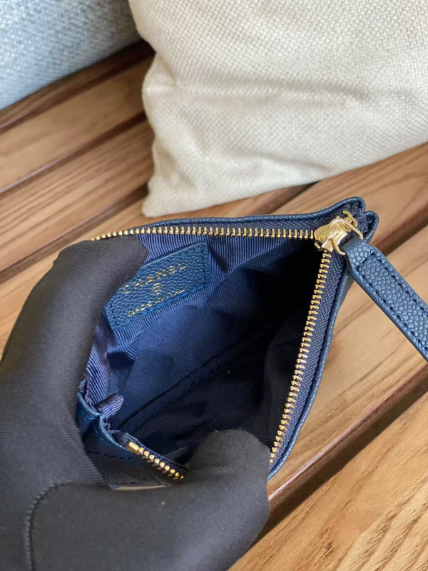 샤넬 클래식 미니 파우치 네이비 캐비어 금장 15 x 9.5CM