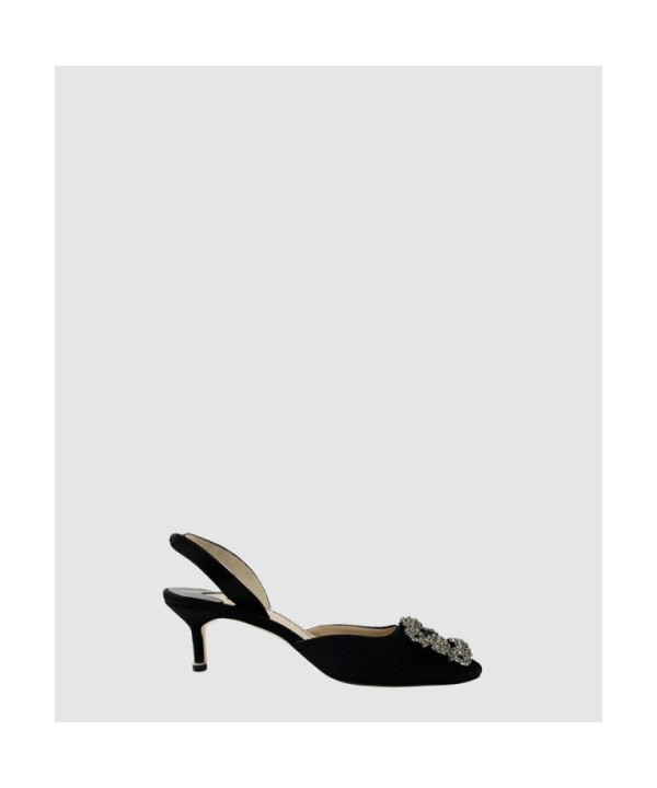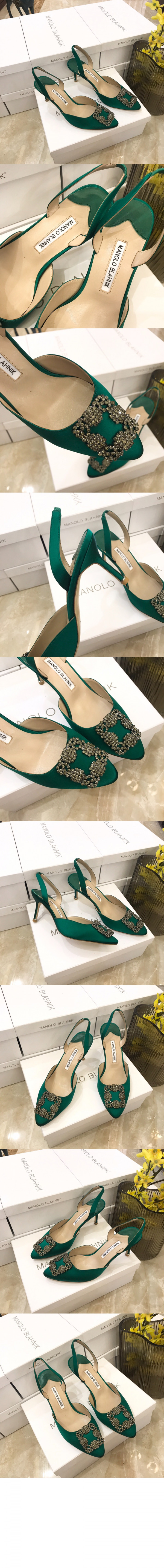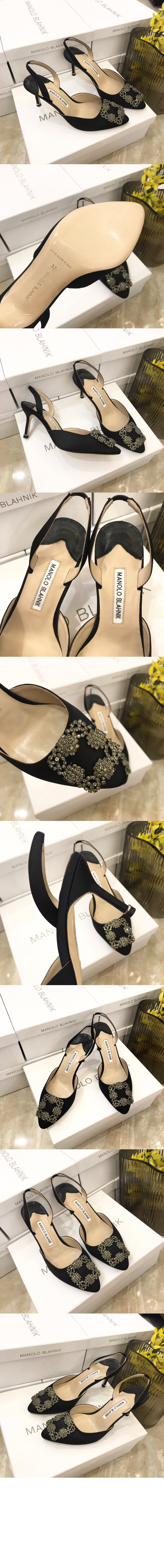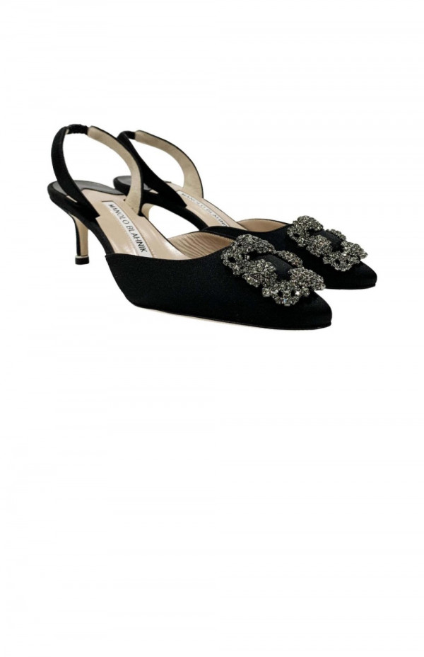 마놀로블라닉 새틴 주얼 버클 뮬