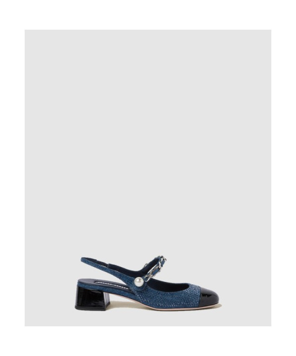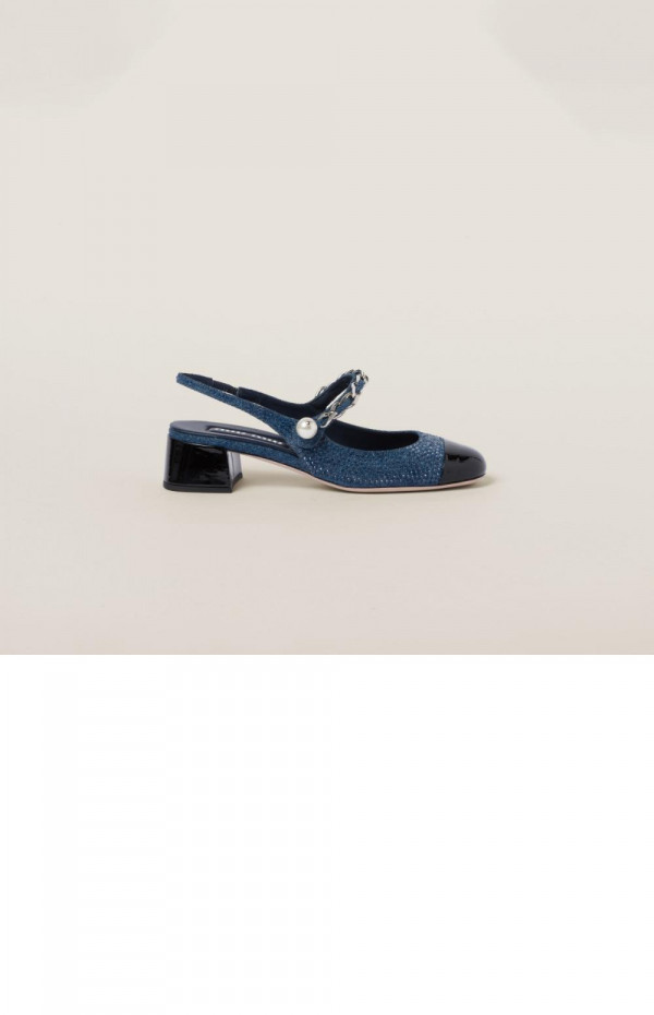 • 미우미우 데님과 페이턴트 가죽 슬링백 펌프스 5I048E