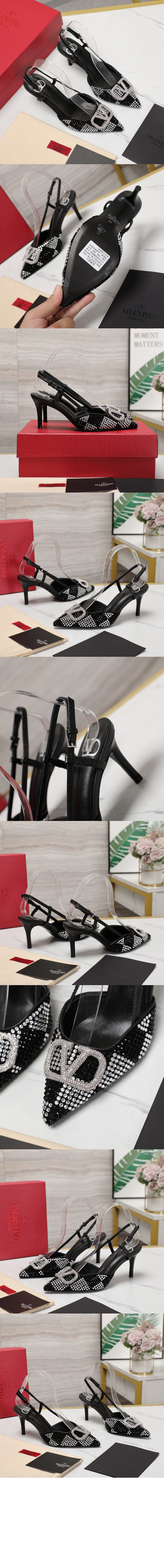 발렌티노 로고 크리스탈 임베리쉬드 레더 슬링백 펌프스 3W0S0R