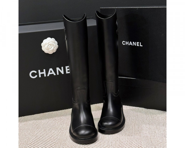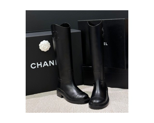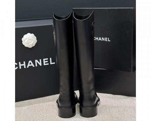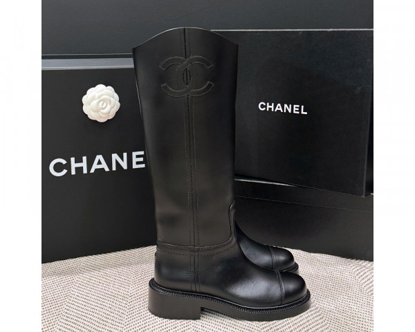 샤넬 가죽 빅 옆 CC로고 롱부츠 24SS 레더 부츠 블랙 G45433