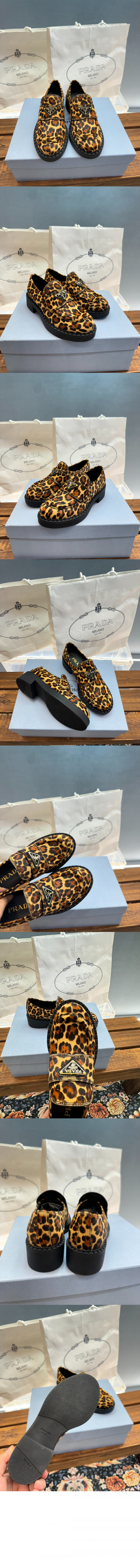 • 프라다 초콜릿 프린트 가죽 로퍼 1D246M