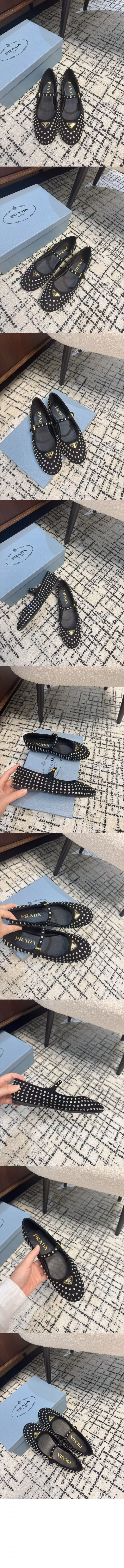 • 프라다 크리스털 장식 스웨이드 발레리나 1F796N
