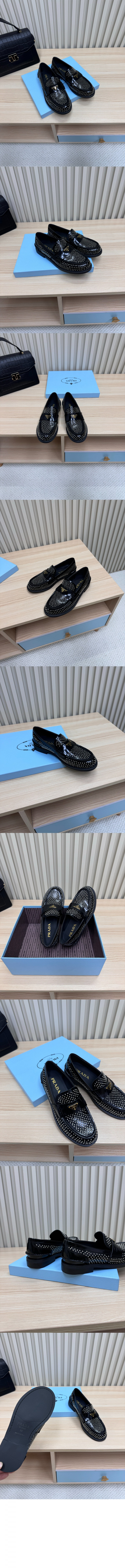 • 프라다 스터드 장식 샤이니 레더 로퍼 1D814N