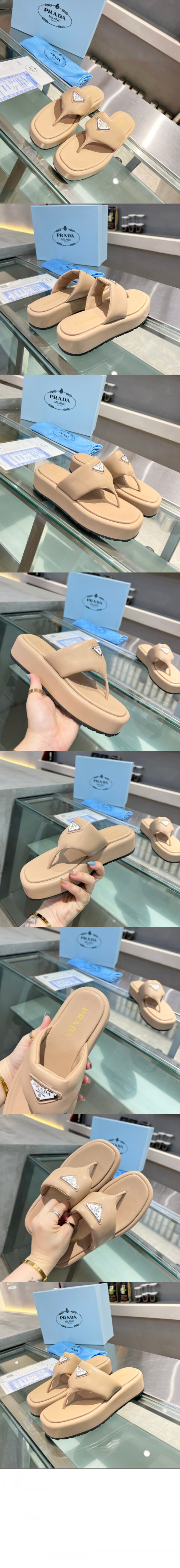 • 프라다 소프트 패딩 나파 통 웨지 샌들 1YZ043