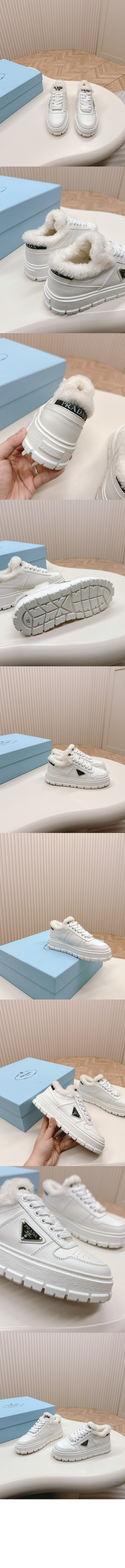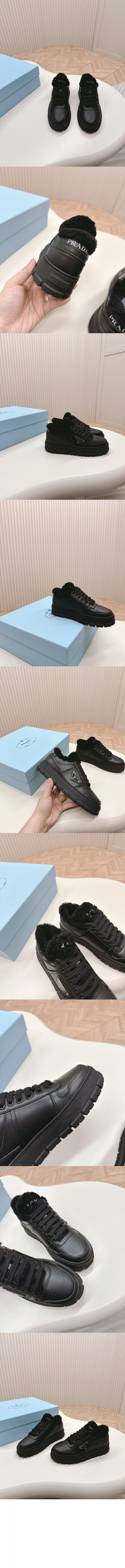 프라다 시어링 디테일 레더 스니커즈 1E947M