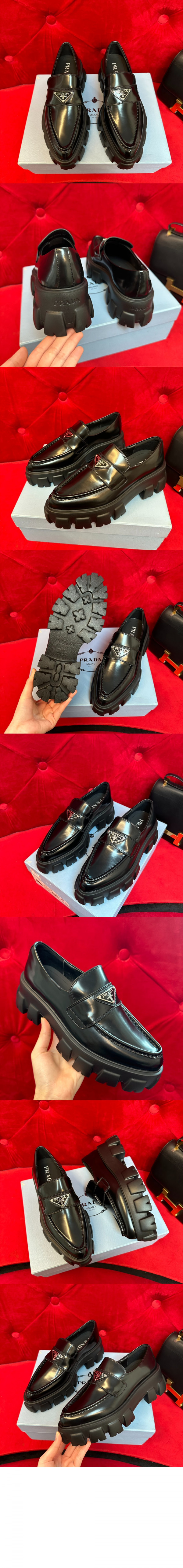 • 프라다 모놀리스 브러시드 로고 로퍼 1D663M