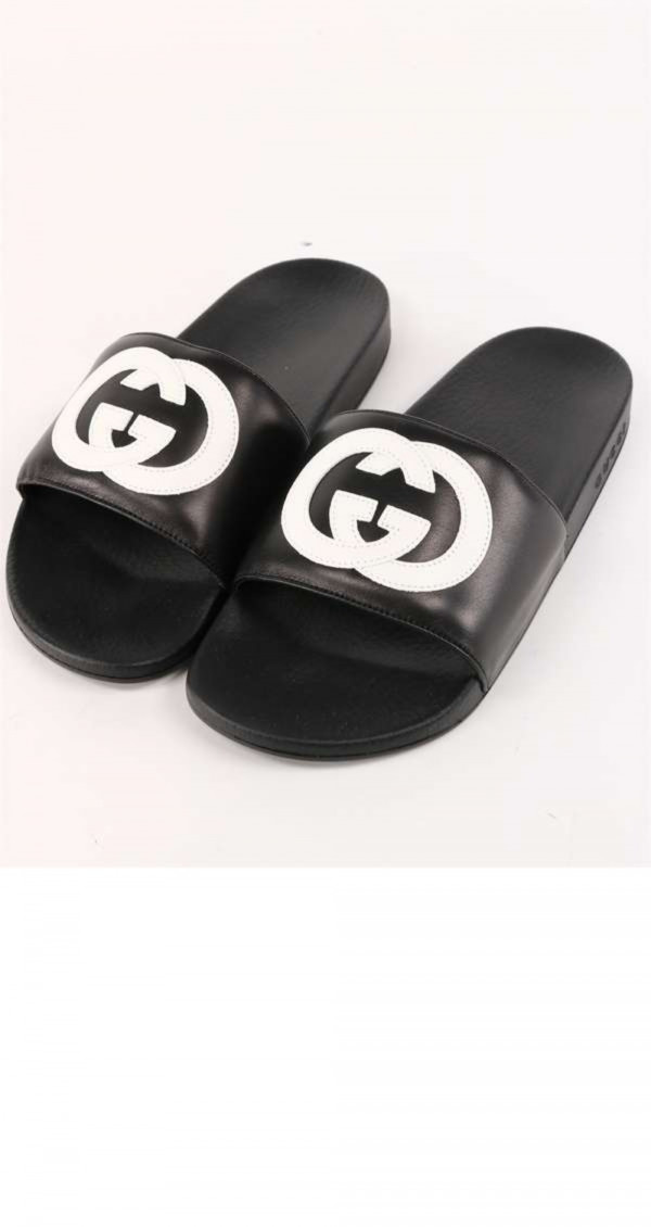 구찌 인터로킹 G 밴드 레더 슬라이드 644756